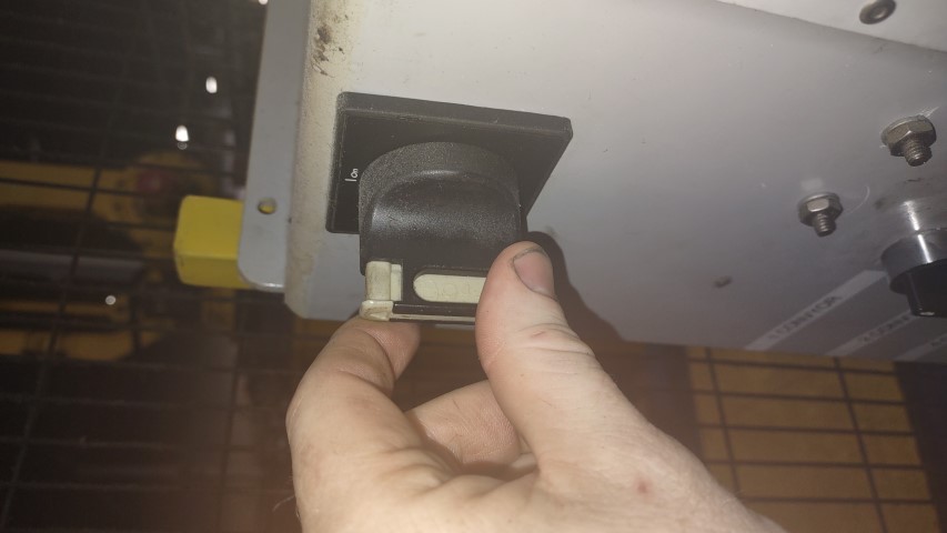 | 94 | 1025 | Pivot Belt - 1-2 (A-B) | Step 1 | Electricity 220V | | LOTO pad lock | Power disconnect behind slicer | Lock and tag out switch | No power | Link to Picture | 2023-01-24 14:01:27 |