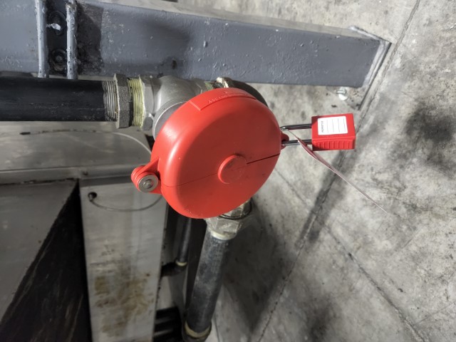 | 115 | 1029 | Fryer - Kettle 1 (A) | Step 2 | Natural Gas | | Valve Lock out with lock out pad lock | Natural gas pipe ball valve | Lock and tag out | No Gas | Link to Picture | 2023-01-31 11:17:34 |