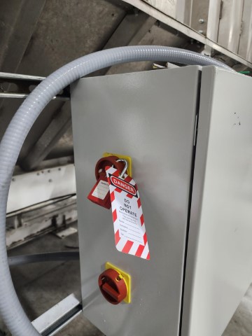 | 77 | 1066 | Mass Flow 4 | 5 | Electricity 120V | | Lock and Tag | Main electrical | Lock | Stored energy electrical and hydraulic | Link to Picture | 2022-07-20 12:38:33 |
