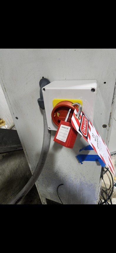 | 122 | 1025 | Pivot Belt - 1-2 (A-B) | Step 1 | Electricity 220V | | Lock out pad lock | Main electrical switch | Lock and tag out switch | No power | Link to Picture | 2023-01-31 11:36:14 |
